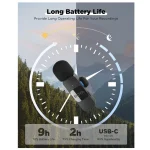 The transmitters with a 360° rotating back clip supports up to 9 hours of runtime The receivers are device-powered and have USB-C charging ports, which support charging and powering of devices while in use.