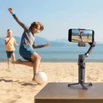 No need to remove your phone from its case; the upgraded clamp supports phones measuring up to 3.3″ wide. A built-in intelligent sensor and automatic alignment detect your phone and adjust the gimbal accordingly for optimal balance. The gimbal can support loads up to 10.6 oz.