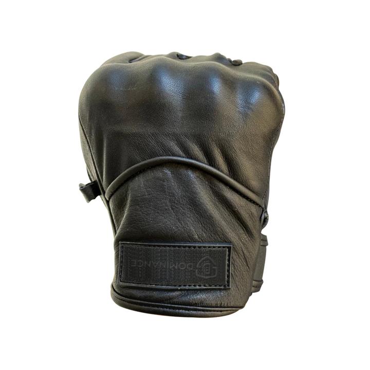 Description: Black full leather gloves.