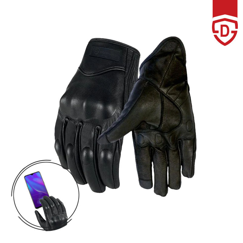 Men’s full grain leather biker gloves with touch screen technology. Ideal for driving/shooting/riding/hunting and industrial production.
